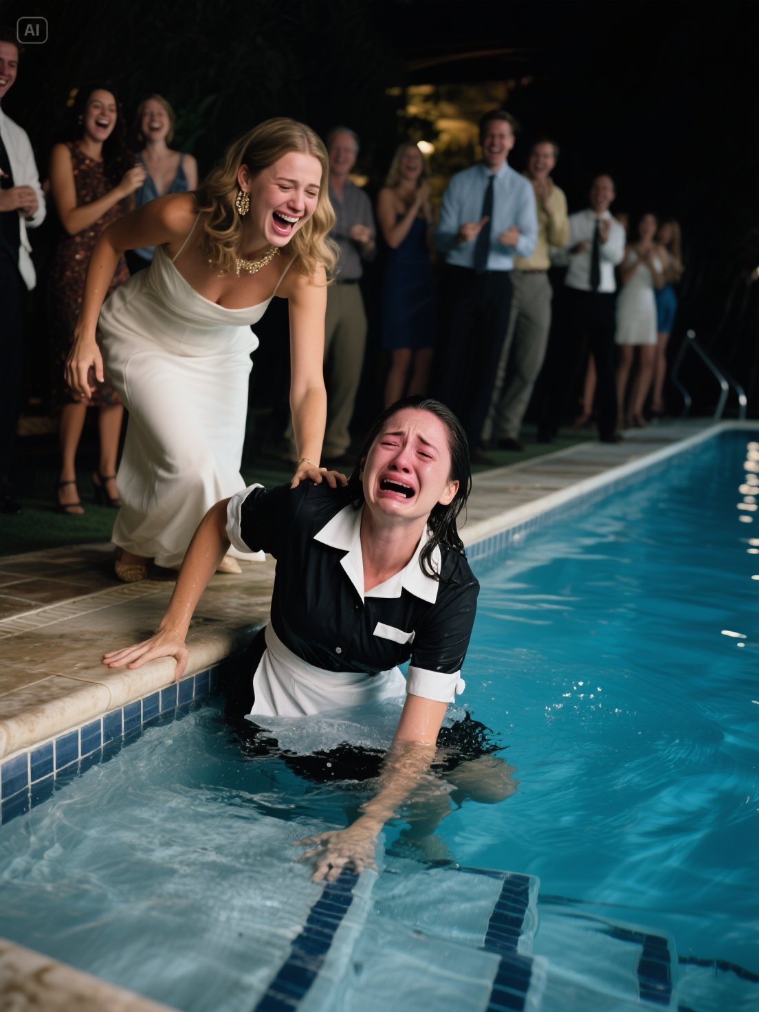 Dach mienił się tysiącem miejskich świateł odbijających się od powierzchni basenu. Muzyka pulsowała w nocy niczym bicie serca, mieszając się z brzękiem kieliszków szampana i pomrukiem uprzejmych śmiechów. To była jedna z tych ekskluzywnych imprez, na których bogaci gromadzili się, by popisać się swoim majątkiem i ego.