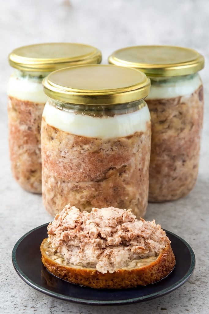 Składniki: (na ok. 3 słoiki 500 ml) 1 kg łopatki wieprzowej 500 g boczku (najlepiej surowego, bez skóry) 200 g słoniny 20 g soli (ok. 2 płaskie łyżki)