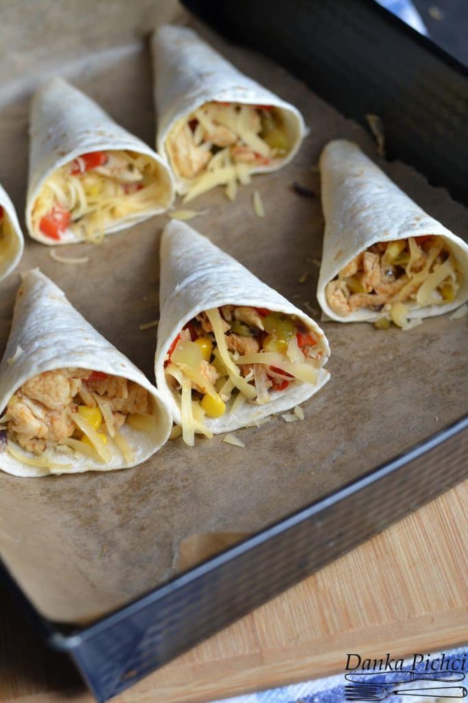 Składniki na Zapiekane rożki z tortilli: około 250 g filetu z piersi kurczaka 1 łyżka przyprawy do gyrosa 1 czerwona cebula 1/2 czerwonej papryki 2 nieduże ogórki konserwowe 3 łyżki