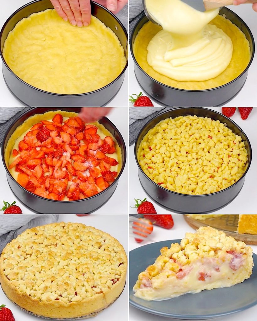 Składniki DAWKA DO FORMY 24 CM MĄKA 00400g CUKIER150g MASŁO150g JAJKA2 WANILIA 5ml DO WYPEŁNIENIA LATTE MACCHIATO500ml CUKIER80g MĄKA 0070g JAJKA 2 Skórka CYTRYNA, 1 TRUSKAWKA 250 g