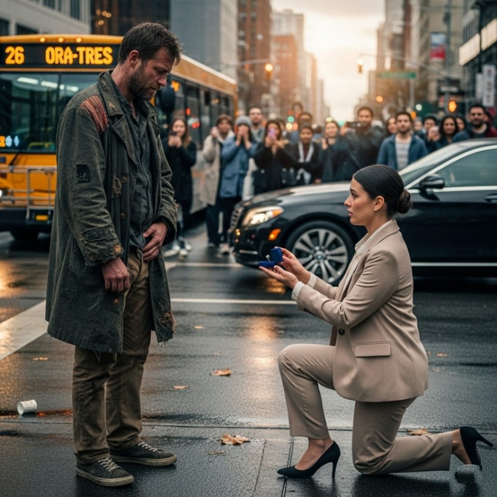 Powietrze było przesycone delikatną zasłoną deszczu, gdy ludzie przemykali z uniesionymi parasolami i spuszczonymi oczami – ale nikt nie zauważył kobiety w beżowym kostiumie, która uklękła na środku skrzyżowania. Jej