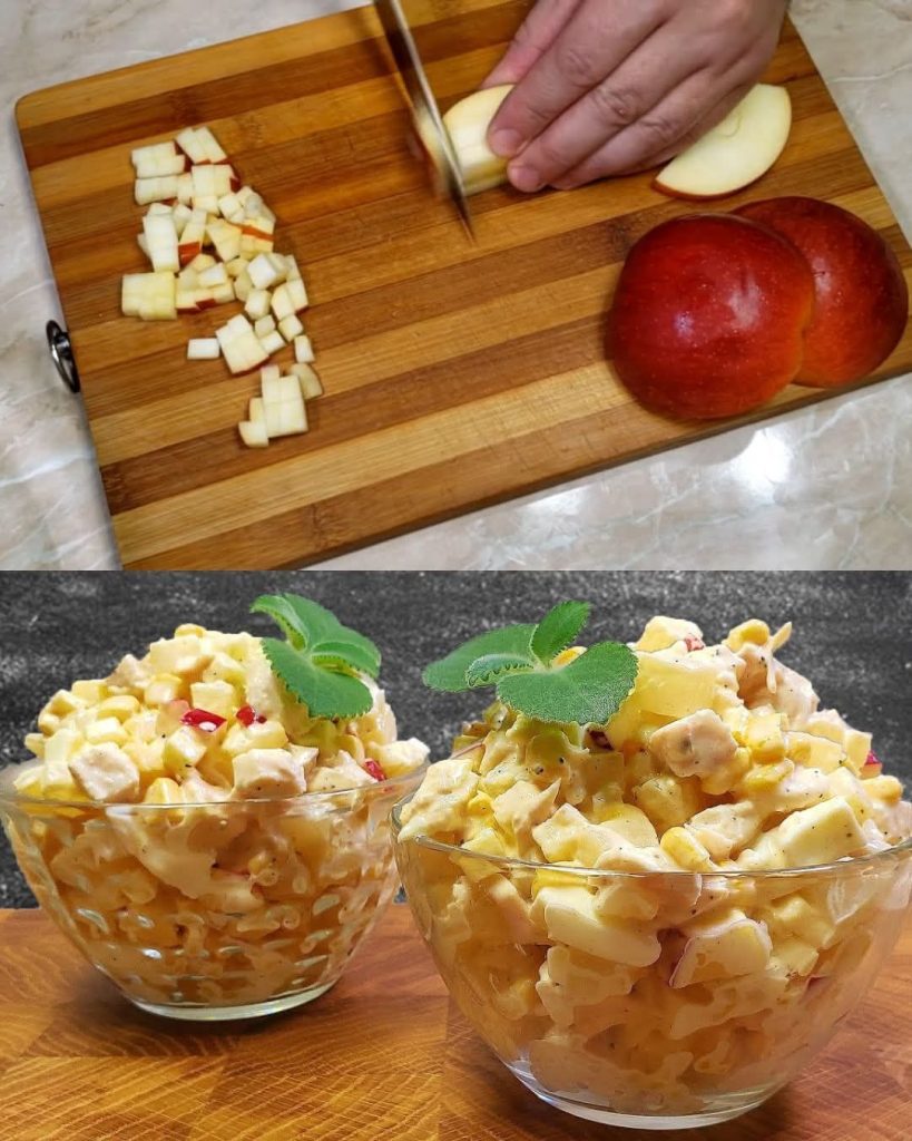 Składniki: Pierś z kurczaka – 250-300g Ananas w puszce – 300g (odsączony) Słodkie jabłko – 1 duże (dobrze sprawdzi się Granny Smith lub Fuji) Jajka – 2 szt. Kukurydza konserwowa – 200g (½ puszki) Sól –