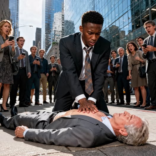 Starszy mężczyzna w szarym garniturze nagle upadł na chodnik. Przechodnie zamarli. Niektórzy krzyczeli, inni wyciągali telefony, ale nikt się nie ruszył. Marcus nie wahał się. Upuścił teczkę i rzucił się w stronę mężczyzny.