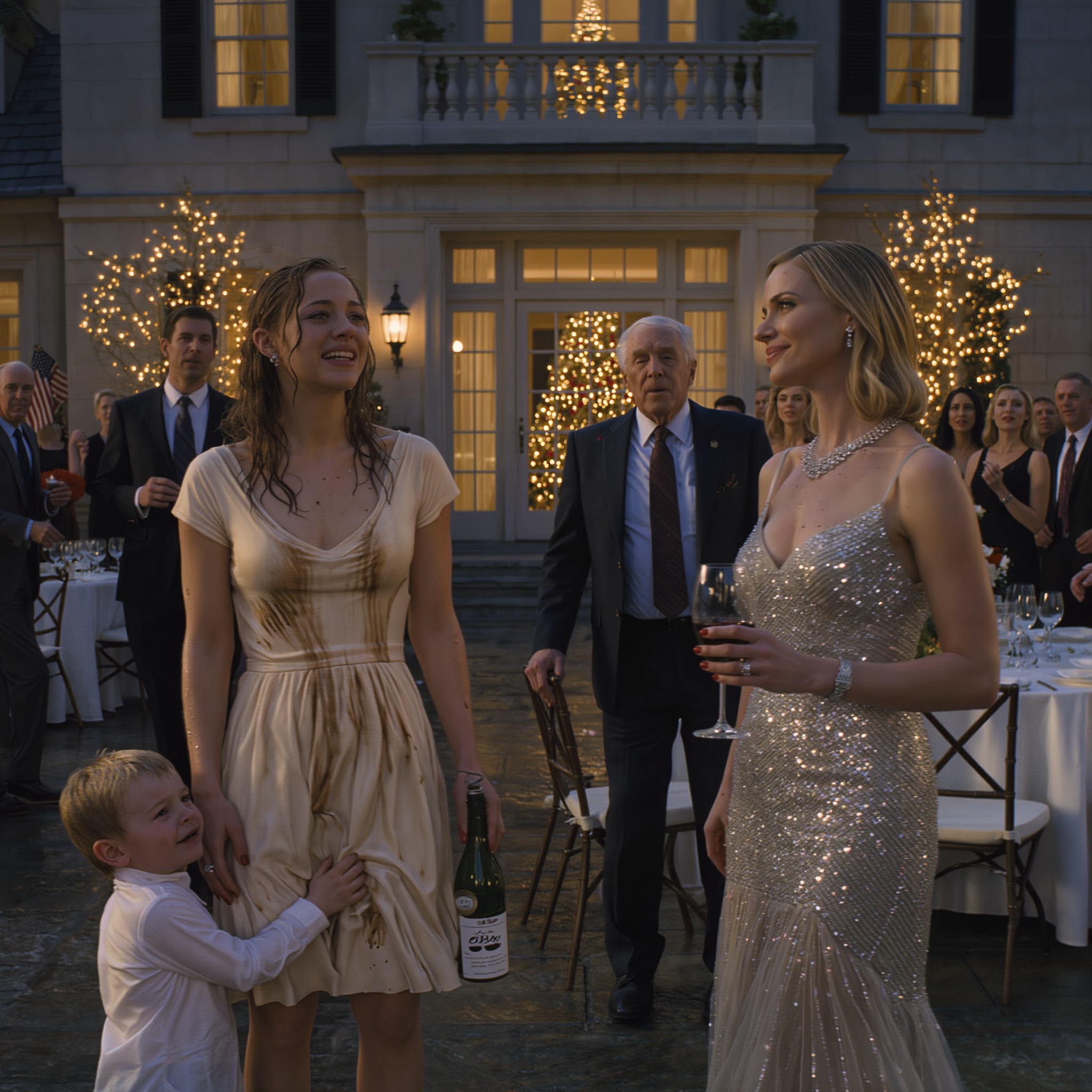 Ale William minął syna i podszedł prosto do mnie. Wciąż stałem tam, ociekając winem, trzęsąc się i dezorientując.