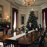 Jedliśmy przy ciepłym świetle lamp – scena, jaką pary przedstawiają na kartkach świątecznych. Mówił o kontraktach i publiczności w Waszyngtonie. Zadałem jedno czy dwa pytania. Jego wzrok co chwila wędrował w stronę zegara.