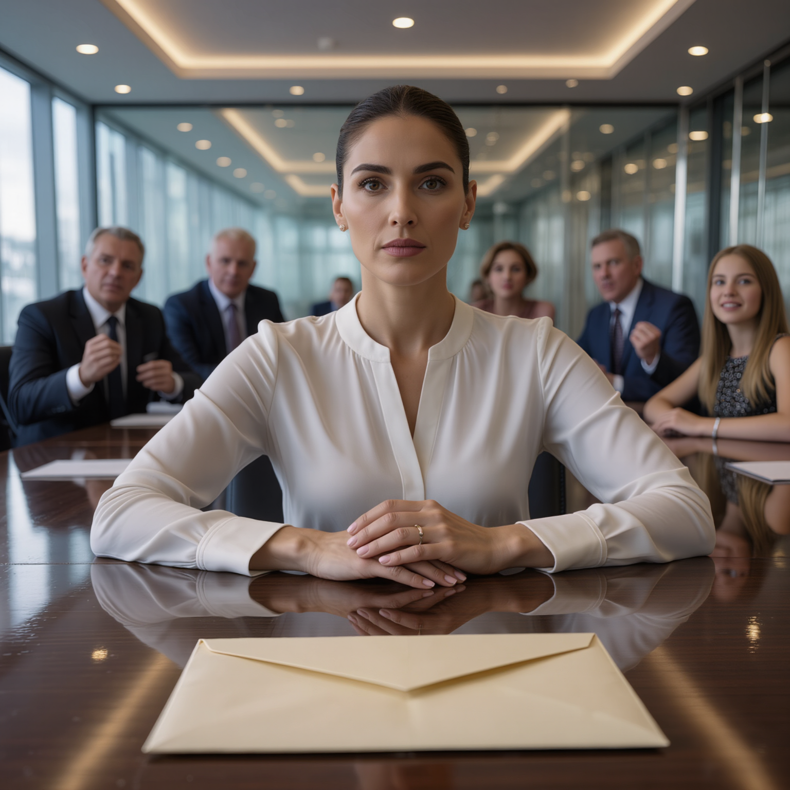 Po drugiej stronie stołu, tusz do rzęs Chloe zaczynał spływać. Ściskała teczkę z piętnastoma milionami, jakby mogła zniknąć, gdyby choć trochę rozluźniła uścisk.