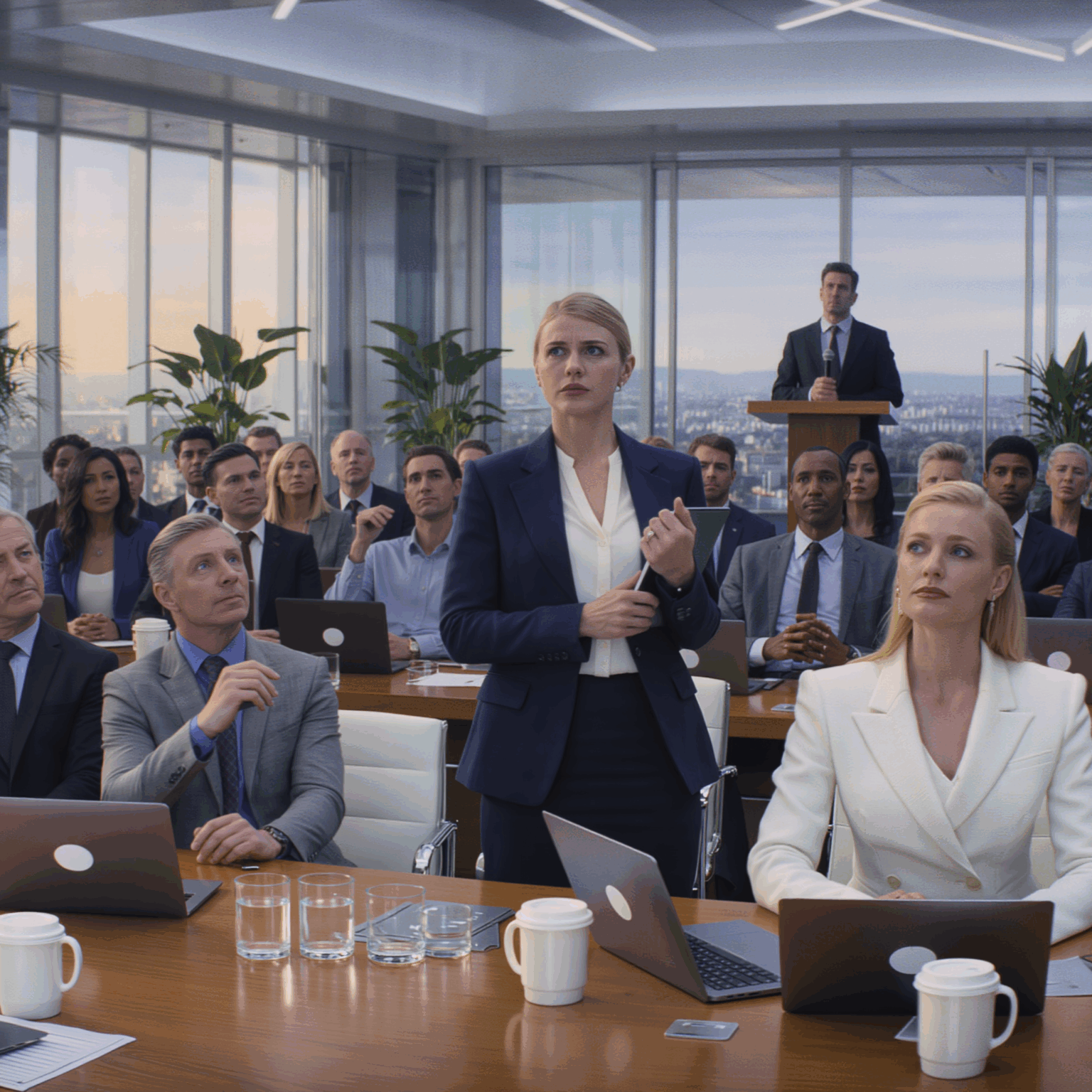 Wszedłem na spotkanie całej firmy, oczekując wyników za trzeci kwartał. Nathan stał na podium, a Vanessa obok niego.