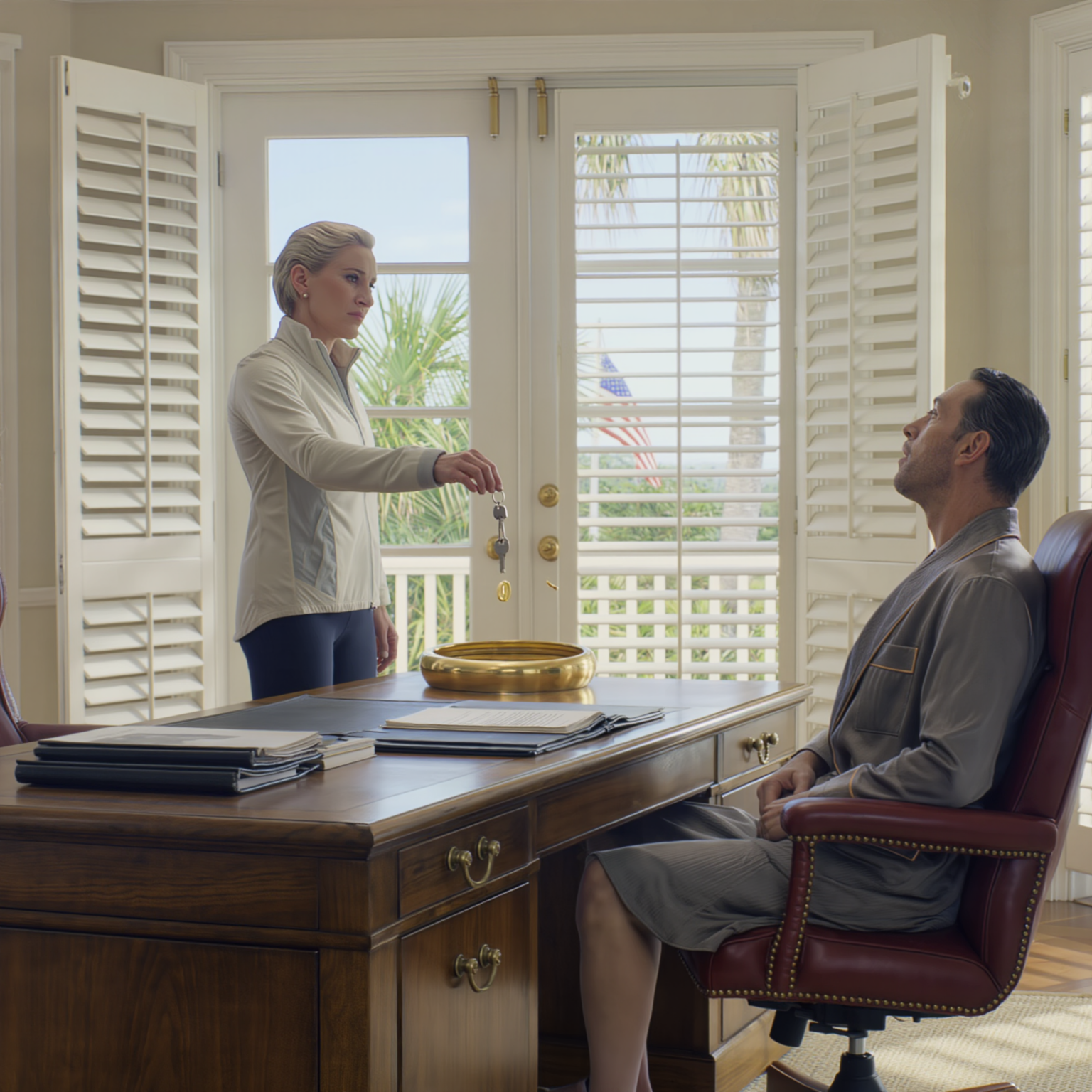 Chciał aktu własności majątku, który babcia zostawiła mi w testamencie – rozległej posiadłości na obrzeżach Miami, położonej na strzeżonym osiedlu, gdzie amerykańska flaga wisiała na niemal każdym ganku. Chciał połowę firmy, którą zbudowałem od podstaw, Meredith Blackwood Interiors, podczas gdy sam grał w golfa i nazywał siebie „inwestorem”.