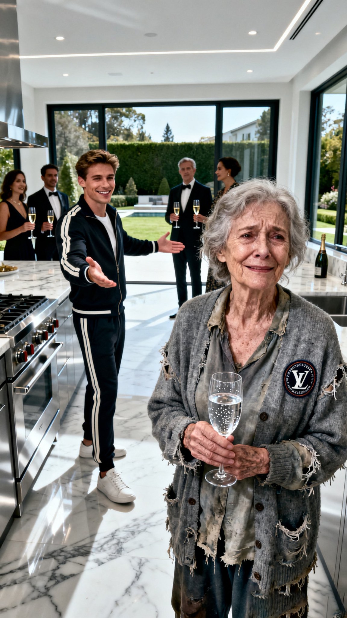 Stałem jak sparaliżowany w pokoju gościnnym, a moja zniszczona walizka wciąż leżała otwarta na łóżku. Głosy rozlewały się po domu mojego syna niczym woda przebijająca się przez pękniętą tamę – śmiech, ostry brzęk drogich kieliszków do szampana, rytmiczne staccato markowych obcasów stukających o marmurowe podłogi.