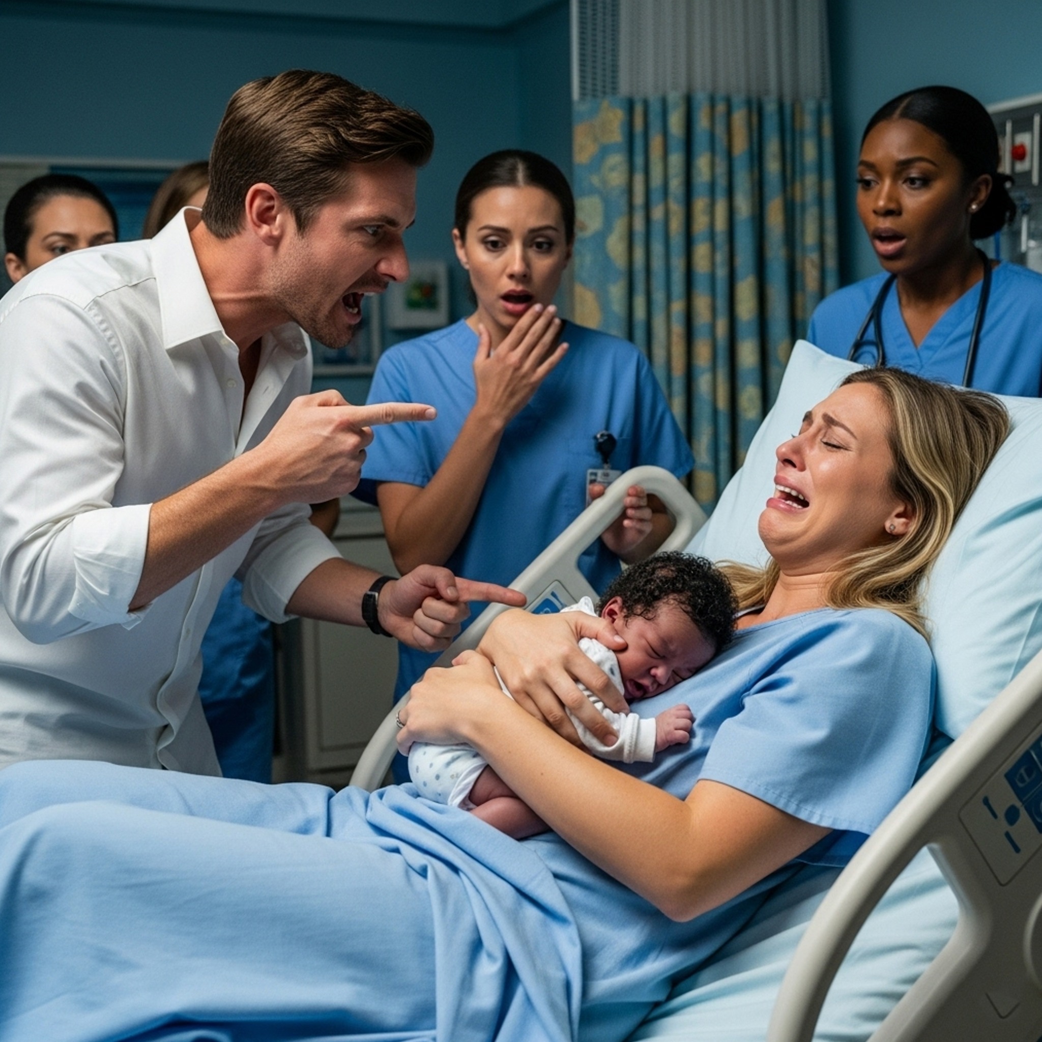 Ava miała ciemną skórę i kręcone włosy – cechy, które wyraźnie wyróżniały zarówno Jasona, jak i Emily. Pielęgniarki wymieniły krótkie, niezręczne spojrzenia. Jason zamarł. Jego ręce drżały, gdy sięgał po dziecko, a potem powoli je cofnął.