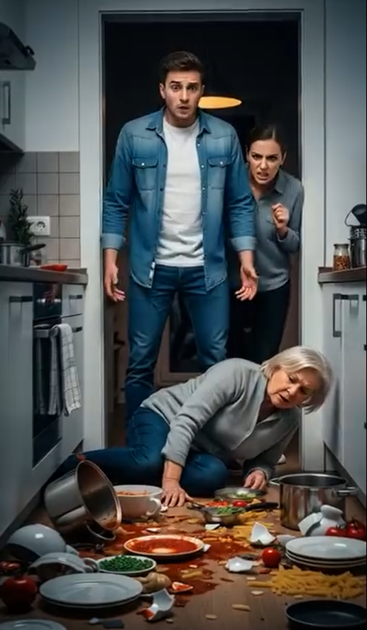 Pięć minut później z kuchni dobiegł ogłuszający huk. Garnki, naczynia, moje ciało uderzające o podłogę. Robert podbiegł i zamarł w drzwiach. „Mamo, co zrobiłaś?” wyszeptał, patrząc na mnie rozciągniętą wśród szczątków mojej godności.