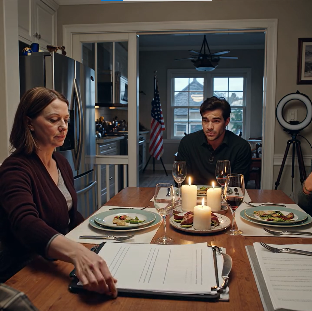 „Cieszymy się, że jesteś tu dziś wieczorem, Rebecco. Jest coś, o czym chcemy porozmawiać z twoim ojcem”.