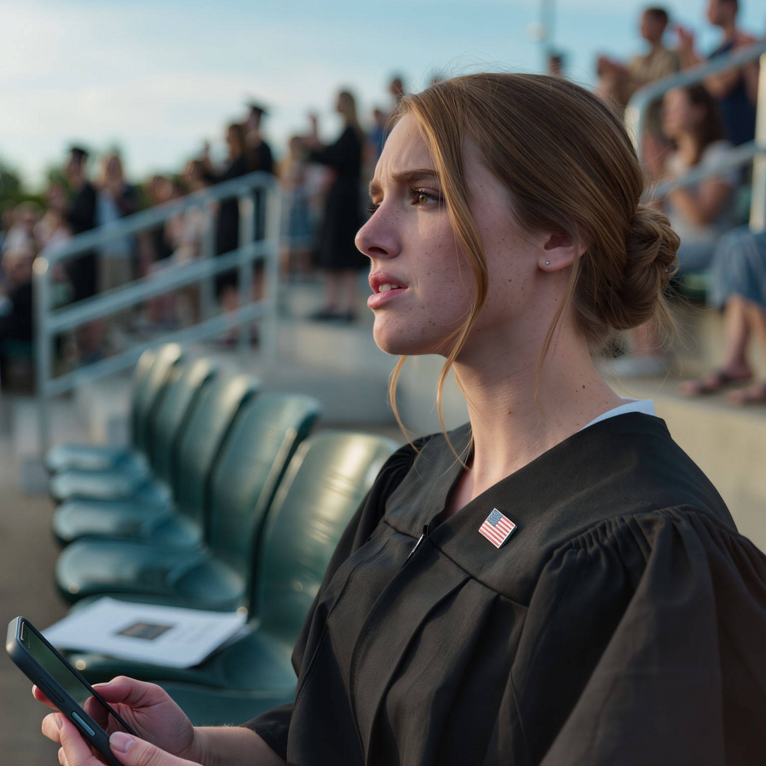 Stadionowe światła uderzyły jak ściana gorąca w chwili, gdy tylko weszłam na scenę. Orkiestra dęta gdzieś na trybunach walczyła o utrzymanie tempa, a tłum ryknął jedną długą falą, która wprawiła frędzle na naszych czapkach w drżenie. Dostrzegłam błysk czerwieni, bieli i błękitu na małym magnesie z flagą przyczepionym do tyłu minivana w pierwszym rzędzie – obok niego krzywo przyklejony był czyjś szyld „Dumna Mama” – i gardło ścisnęło mi się tak mocno, jakbym połknęła piasek.