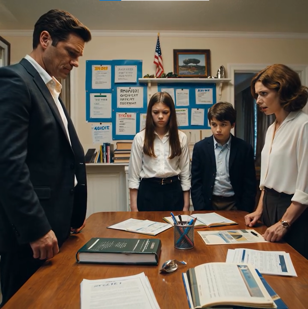 Potem mama i tata pojawili się w sądzie rodzinnym ze swoim prawnikiem i całą szóstką naszych nauczycieli.