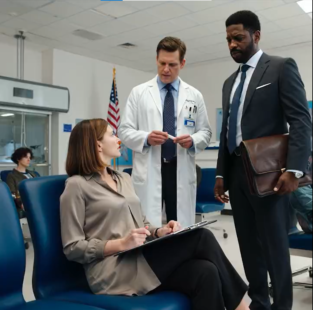 20 minut później dr Stewart wrócił z trzecią osobą – wysokim mężczyzną w nienagannie skrojonym grafitowym garniturze, który wyglądał zupełnie nie na miejscu wśród praktycznych mebli kliniki. Jego obecność emanowała autorytetem, niczym u kogoś przyzwyczajonego do ciszy panującej w pokojach, gdy wchodził.