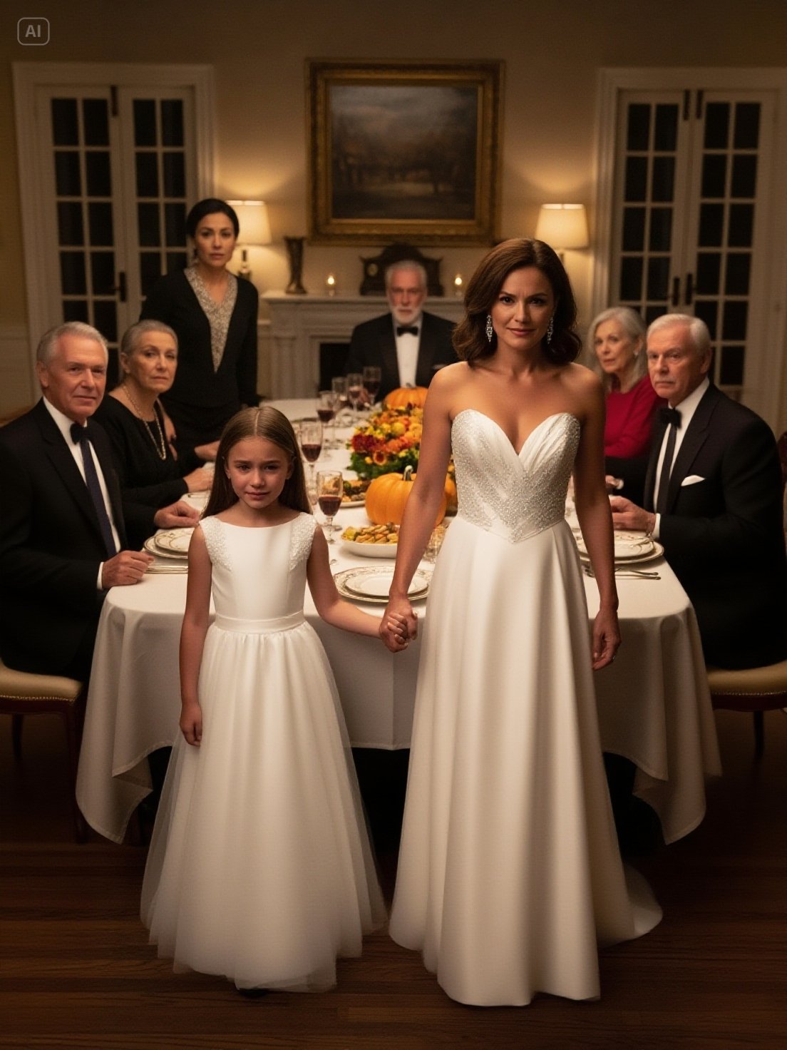 Mój ojciec patrzył na moją dwunastoletnią córkę, jakby była tylko meblem na jego drodze. Nie wnuczką, nie rodziną – tylko przeszkodą stojącą między nim a perfekcyjnie zaaranżowaną kolacją z okazji Święta Dziękczynienia. Żyrandol w jadalni rzucał długie cienie na jego twarz, gdy uniósł rękę i wskazał na kuchnię, a jego ciężka złota obrączka ślubna odbijała światło.