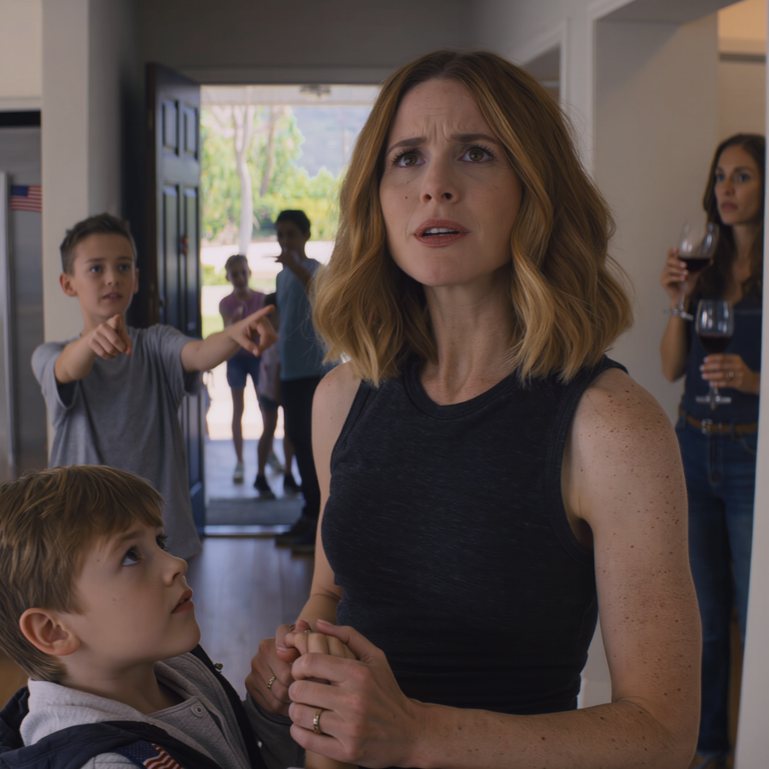 Sinatra popłynął z głośnika w kuchni mojej siostry – cicho, radośnie, niewłaściwie – podczas gdy zapach węgla drzewnego i sosu barbecue z butelki unosił się nad patio. Mój sześcioletni syn, Danny, stał na korytarzu, ściskając swoją granatową kurtkę, a mała, naszyta amerykańska flaga na rękawie zaczepiała go o kciuk, gdy poruszał nią w tę i z powrotem. Przez przesuwane szklane drzwi wciąż widziałem światła na podwórku, piłkę nożną, ruch. W środku dorośli wylegiwali się z mrożoną herbatą i winem, jakby nic nie mogło nas dotknąć. Wtedy mój siostrzeniec Connor spojrzał prosto na mnie, uniósł brodę i – powoli, jakby chciał wylądować każdą sylabą – ułożył w ustach dwa słowa. Śmieci powinny być na zewnątrz. Pokój nie eksplodował. Zapadła najgorsza cisza, pełna uśmieszków, łyków i ciszy. Tej ciszy nie mogłem odsłuchać.