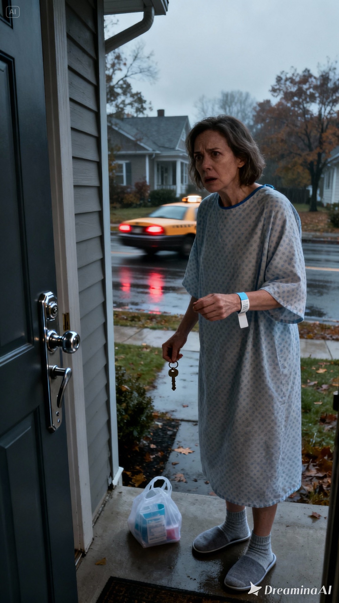 „Dzień dobry, panie Henderson ” – powiedziała, gdy głos się odezwał. Jej ton był spokojny, pozbawiony drżenia rąk. „Stało się. Dokładnie tak, jak przewidział Arthur. Kevin wymienił zamki… Tak. Jestem na ganku. Proszę przynieść teczkę. I ślusarza. I być może… szeryfa”.
