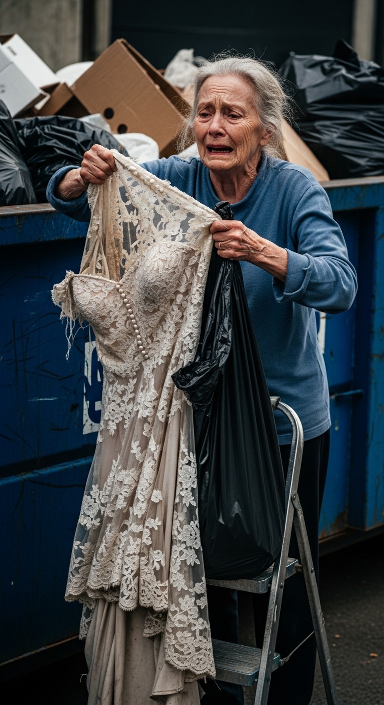 „To moja suknia ślubna” – powiedziałam cicho, a słowa uwięzły mi w gardle. „A raczej była”.