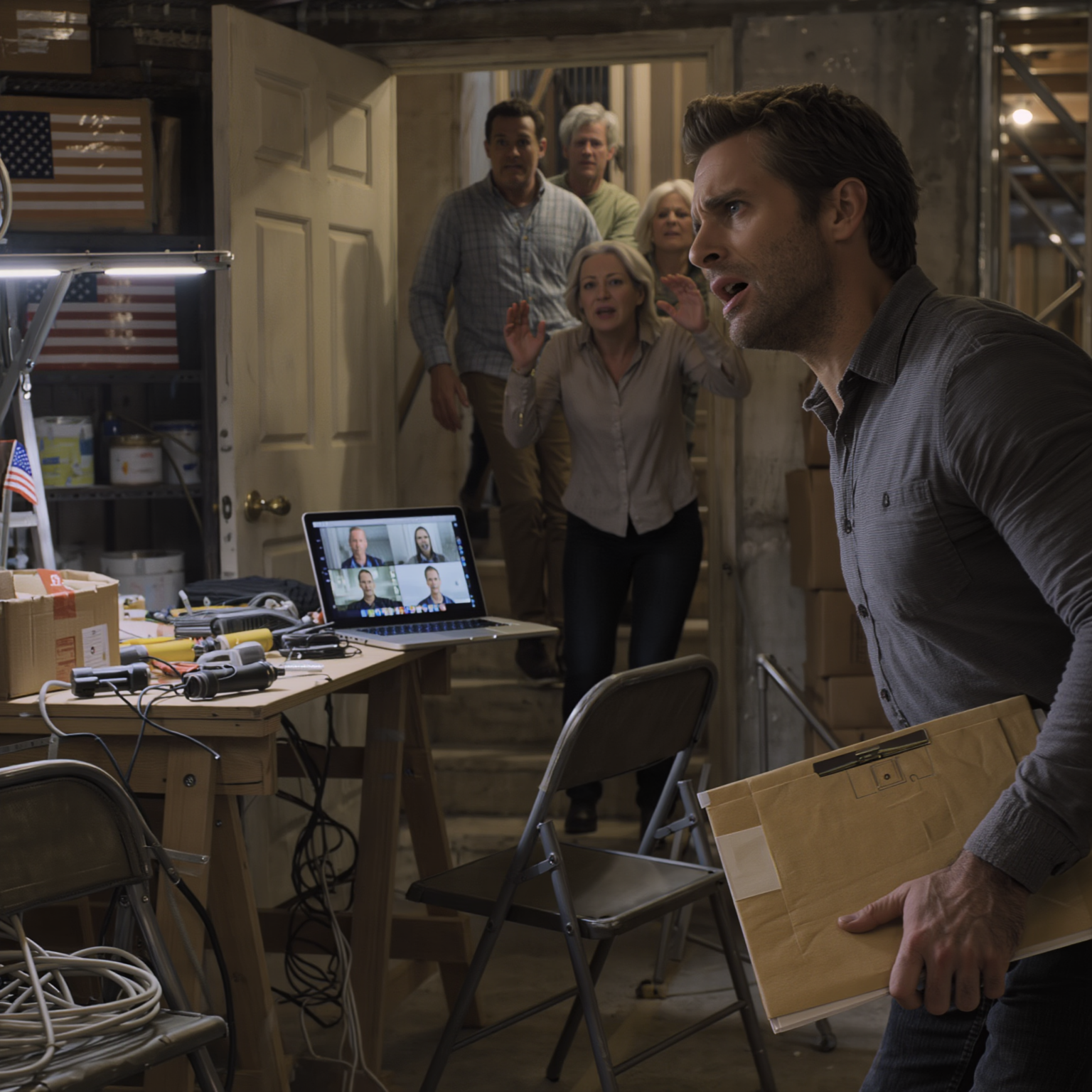 Piwnica była niedokończona, przestrzeń, o której istnieniu się zapomina. Ustawiłem pod schodami składane krzesło, otworzyłem laptopa i trzymałem telefon w dłoni. Magnes z amerykańską flagą na mojej starej skrzynce z narzędziami odbijał światło ekranu, jakby też mnie obserwował.