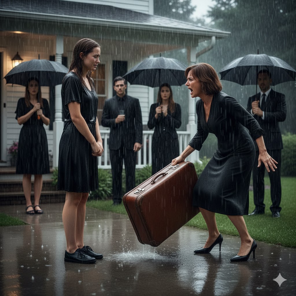 Macocha rzuciła moją ostatnią walizkę na podwórko, a jej słowa przecięły zimny listopadowy deszcz niczym potłuczone szkło. „Wynoś się. Ten dom jest mój. Zamieszkaj z matką”.