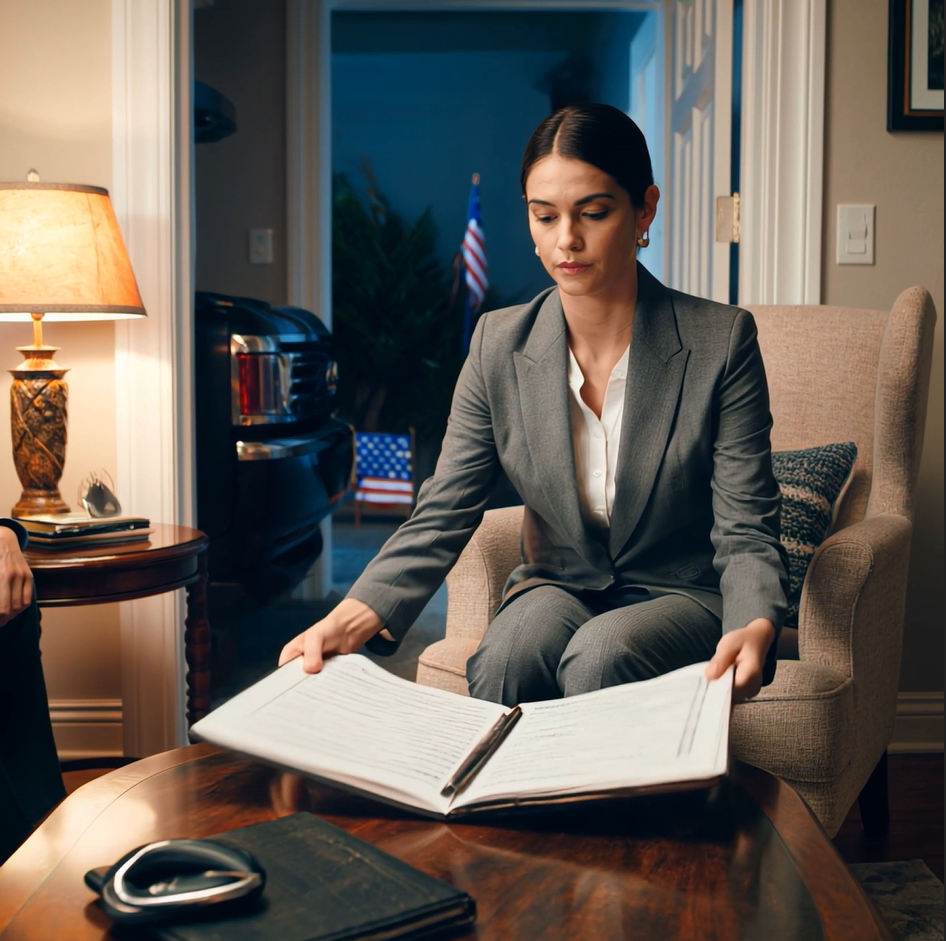 Siadam przy stole w jadalni. Laptop otwarty. Notatnik gotowy. Ezra siada naprzeciwko mnie. Ciche wsparcie.