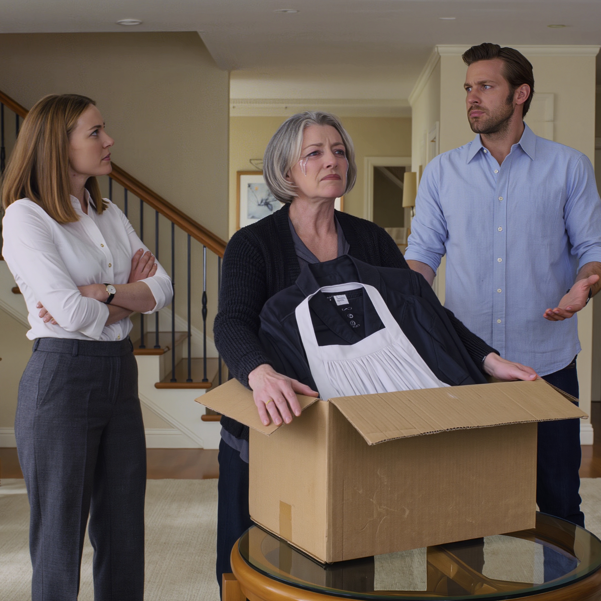 Ręce mi drżały. Podniosłam wieko. W środku był mundur – czarny z białym fartuchem, uniform gospodyni domowej.