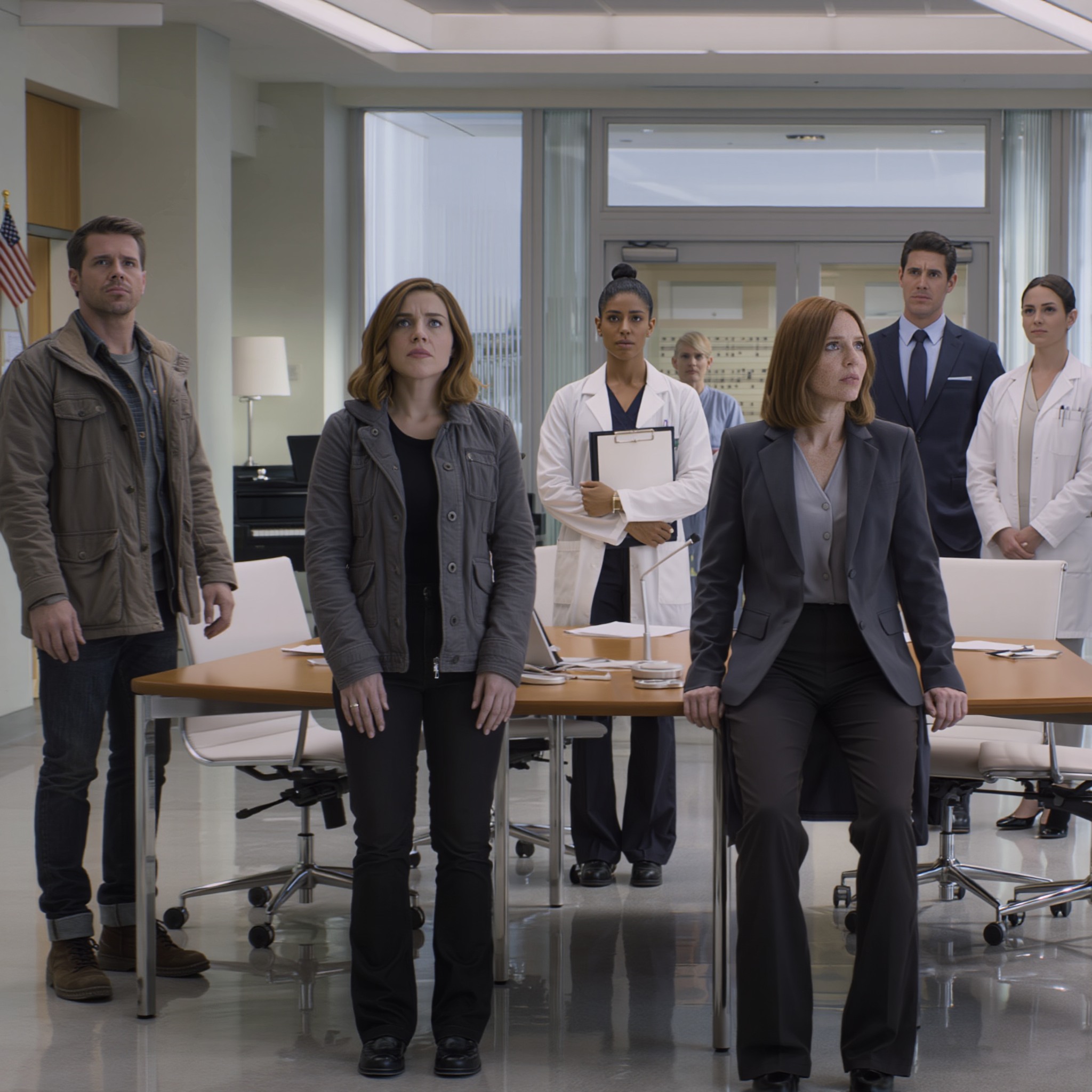Poprowadziła mnie korytarzem do małej sali konferencyjnej. W środku były dwie osoby – mężczyzna w garniturze i kobieta w białym fartuchu. Oboje wpatrywali się w teczkę leżącą na stole.