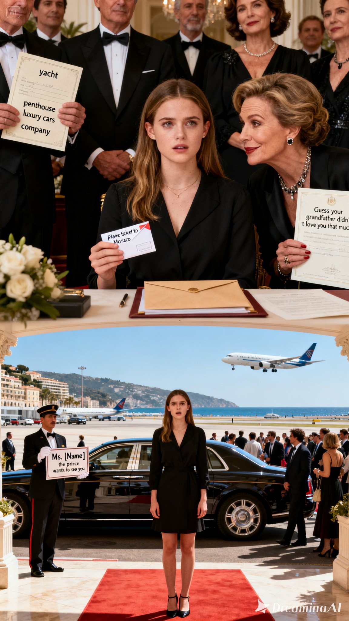 Na pogrzebie dziadka moja rodzina odziedziczyła jego jacht, penthouse, luksusowe samochody i firmę. Prawnik wręczył mi jedynie małą kopertę z biletem lotniczym do Monako. „Chyba twój dziadek nie kochał cię aż tak bardzo” – zaśmiała się moja matka. Zraniona, ale ciekawa, postanowiłam pojechać. Kiedy dotarłam na miejsce, kierowca trzymał tabliczkę z moim imieniem: „Proszę pani, książę chce się z panią widzieć”.