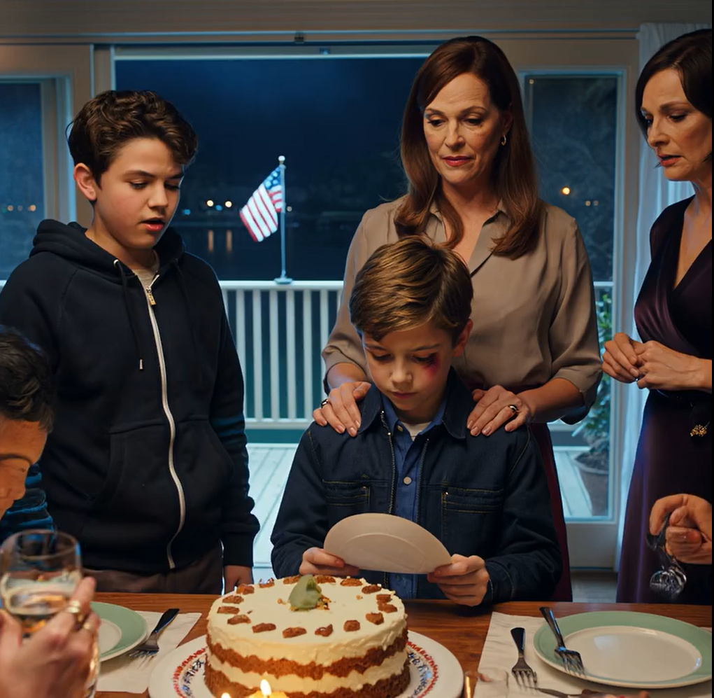 Na urodzinowym przyjęciu panował gwar rozmów, dzieci goniły się z balonami, dorośli stukali się kieliszkami. Mój syn siedział na czele stołu ze spuszczonym wzrokiem, a siniak pod jego okiem był jeszcze bardziej widoczny w blasku żyrandola.