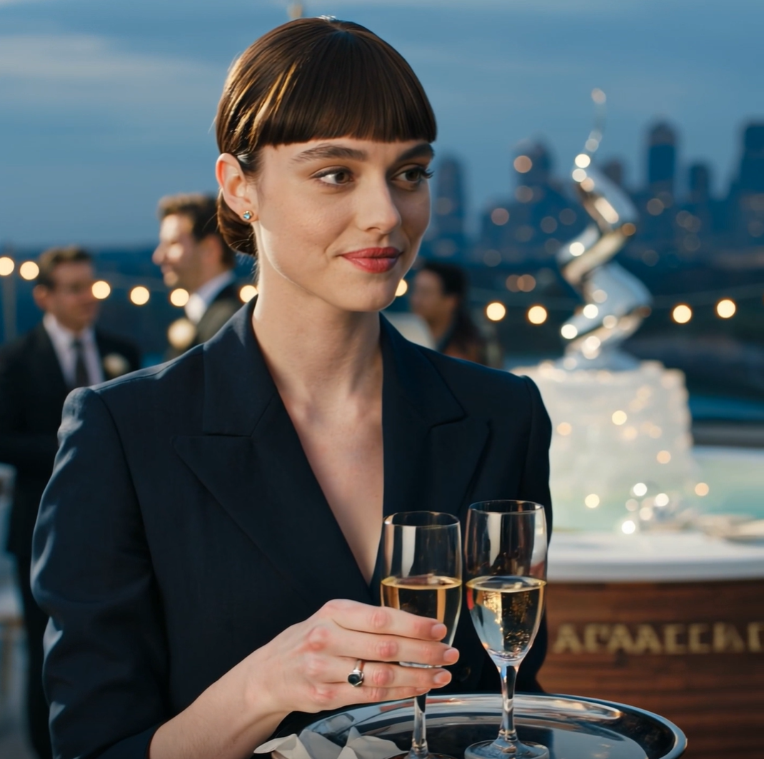 Obserwowałem, jak kelnerzy zaczęli przygotowywać kieliszki na srebrnych tacach. Mój ojciec skinął na kelnera, wskazując konkretną butelkę szampana ze złotą etykietą.
