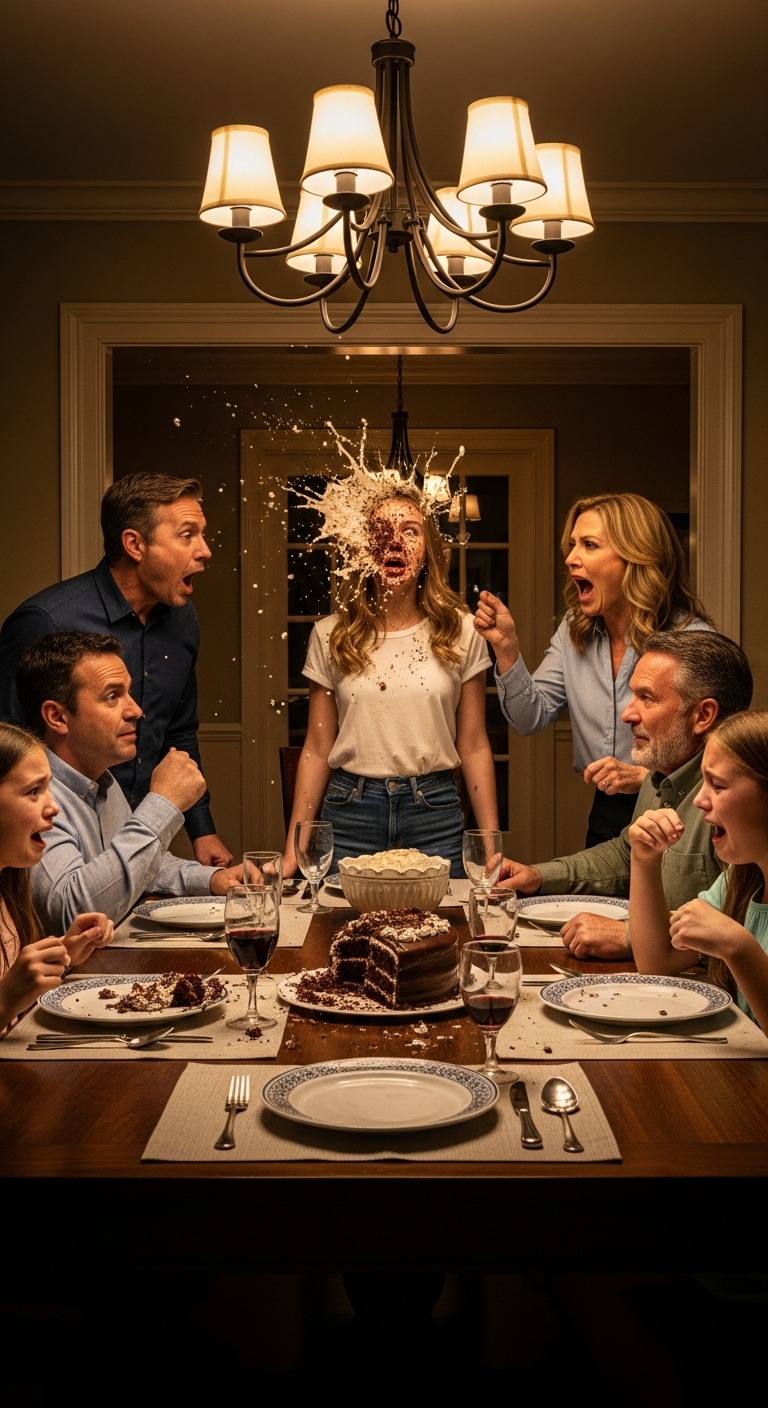 Nazwali mnie chciwym egoistą i rzucili we mnie tortem na rodzinnym spotkaniu, tylko dlatego, że odmówiłem oddania mojego mieszkania za 300 000 dolarów mojej złotej siostrzyczce. Otarłem łzy z oczu i zrobiłem coś, czego nikt się nie spodziewał.