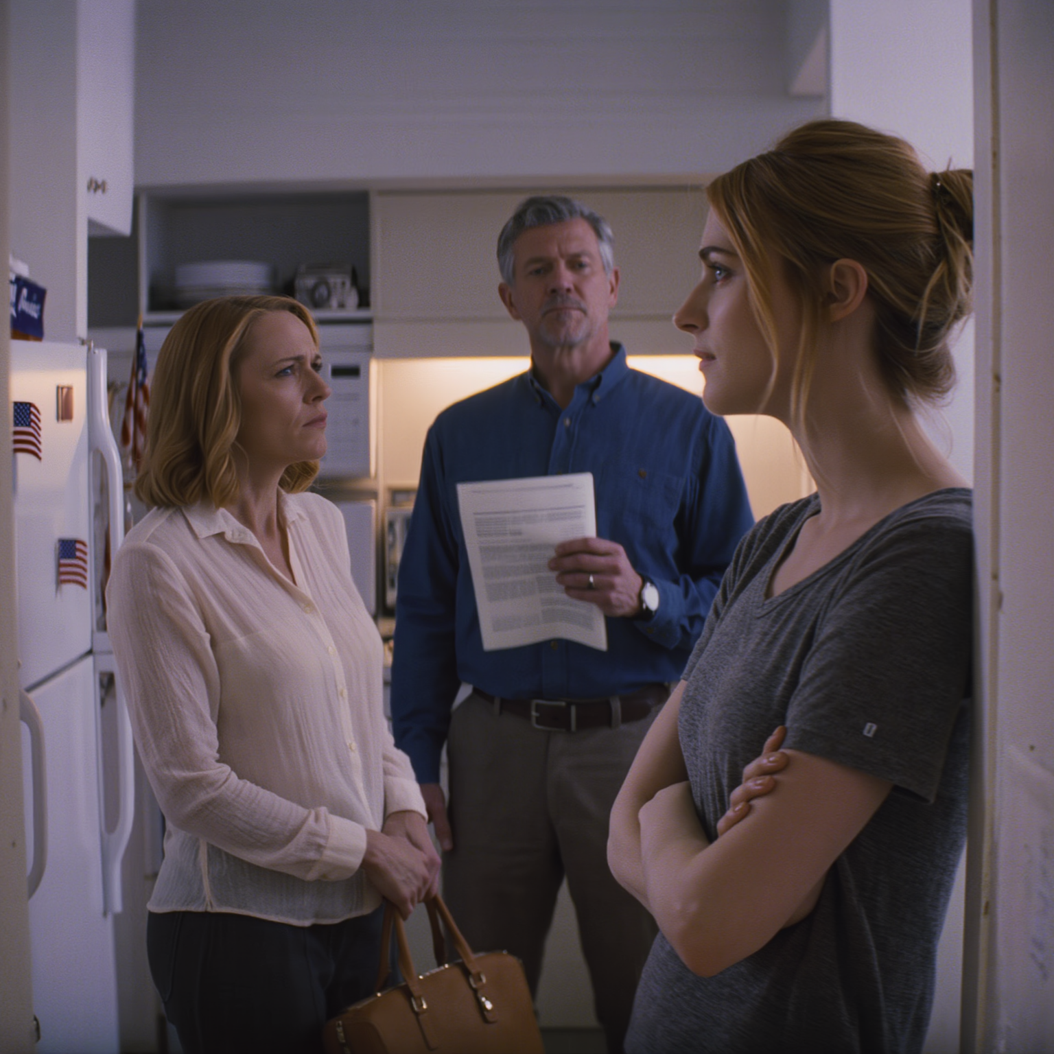 Mama odstawiła kubek na kuchenny blat, jakby sam dźwięk był werdyktem. Poranne słońce wpadało przez żaluzje, malując pasy na stole i małym magnesie z flagą USA przyklejonym do lodówki – jedna z tych pamiątek, które tata kupił lata temu na paradzie z okazji Czwartego Lipca, kiedy jeszcze udawał, że jesteśmy jedną, szczęśliwą, pasującą do siebie rodzinną fotografią. Ogon psa musnął raz, z nadzieją, zanim zorientował się, że nikt nie sięga po słoik z przysmakami.