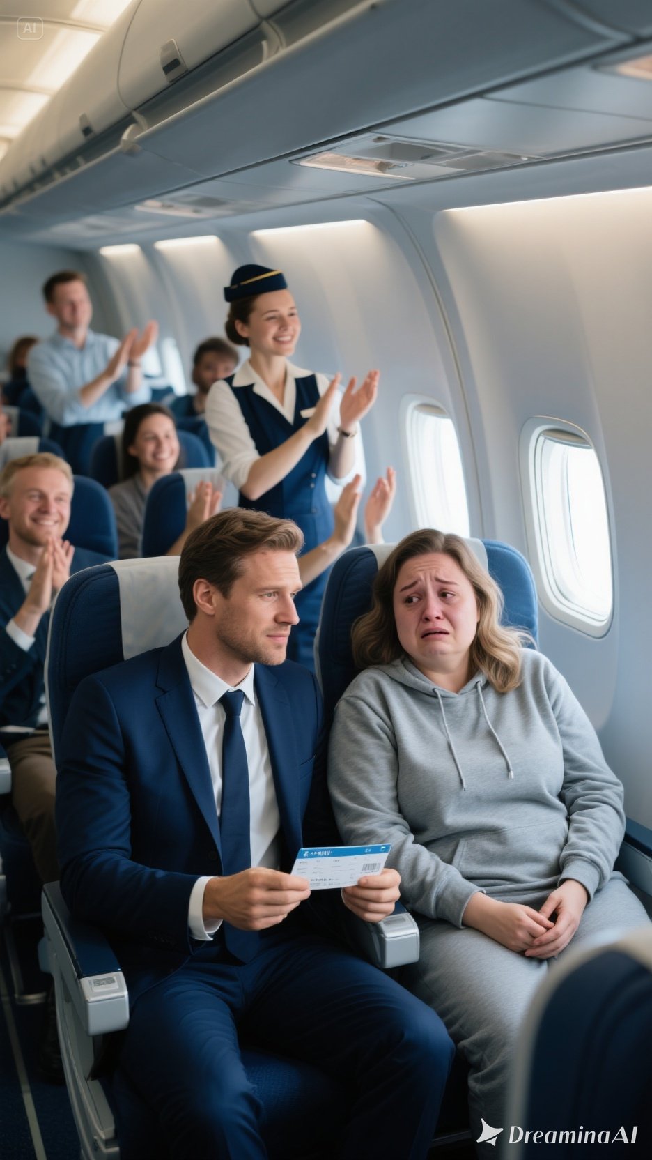 Pasażer pierwszej klasy ocenił kobietę siedzącą obok niego po jej wyglądzie — następnie ogłoszenie kapitana sprawiło, że cała kabina zaczęła ją oklaskiwać