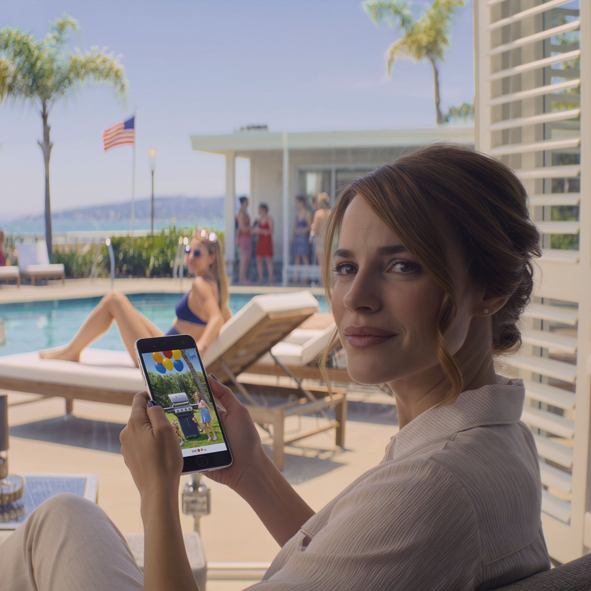 Film początkowo odtwarzał się automatycznie bez dźwięku. Dzieci biegały pod zraszaczami w zwolnionym tempie, a woda błyszczała w słońcu, jakby ktoś wysypał diamenty na trawę. Pies biegł przez podwórko z na wpół spuszczoną z powietrza piłką nożną w pysku. Kamera przesunęła się nad dwoma składanymi stołami uginającymi się pod ciężarem aluminiowych tacek i plastikowych misek – sałatka ziemniaczana, żeberka, grillowana kukurydza, paczki chipsów, butelki napojów gazowanych parujące w upale.