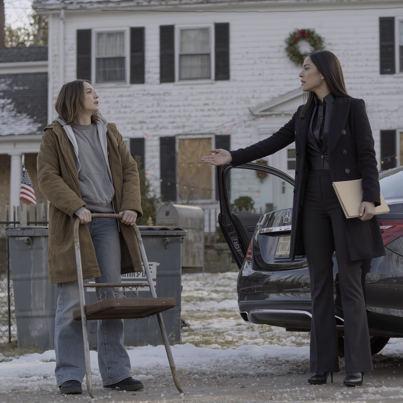 Nazywam się Sophia Hartfield, mam 32 lata i stałam po łokcie w śmietniku za przejętą przez bank rezydencją, gdy podeszła do mnie kobieta w markowym kostiumie.