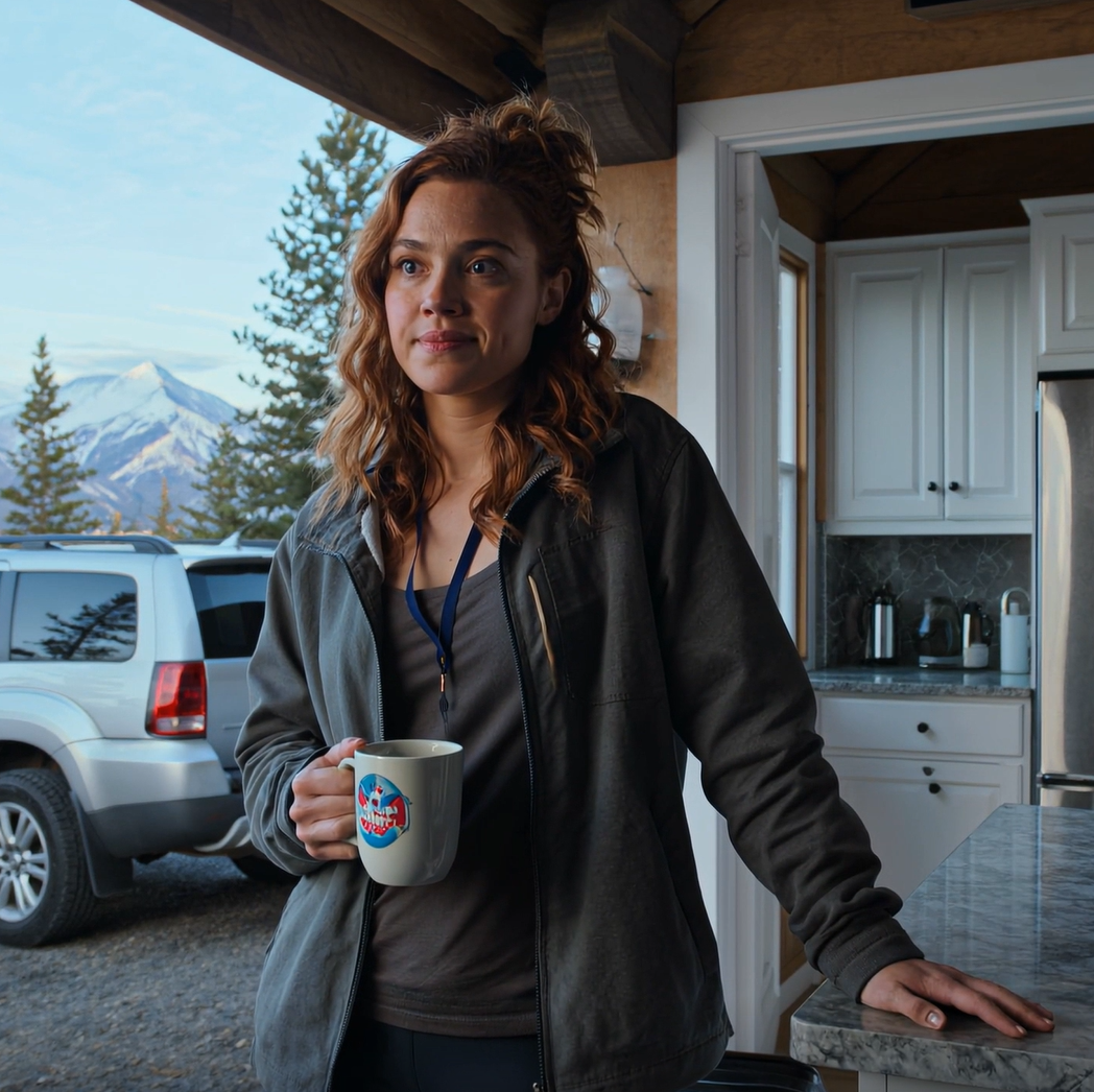 Vanessa stała tam w spodniach do jogi i za dużym swetrze, trzymając kubek do kawy, który rozpoznałem jako część zestawu, który trzymałem w kabinie. Jej blond włosy były spięte w niedbały kok, a ona uśmiechała się do mnie, jakby to było zupełnie normalne, jakby miała pełne prawo stać w moich drzwiach.