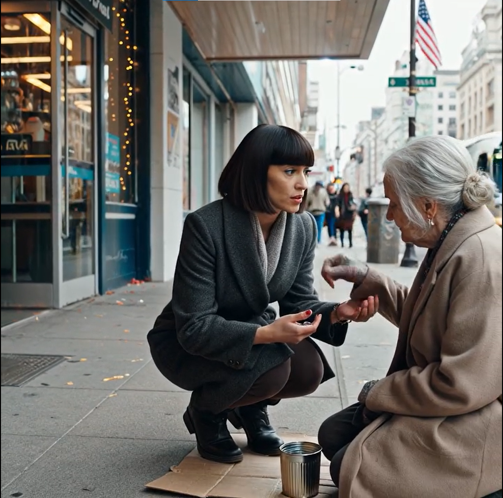 Staruszka nigdy głośno nie błagała, nigdy nie jęczała i nigdy nie wyciągała ręki. Po prostu siedziała tam, owinięta w wyblakły płaszcz, z małym blaszanym kubkiem przed sobą. Na tekturowym napisie, krzywo napisanym, widniał napis: „Proszę o pomoc”.