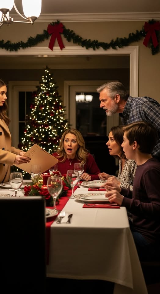 Podczas kolacji wigilijnej mama spojrzała na moje zdjęcie z USG ciążowego i powiedziała: „Nie jesteś matką. Jesteś chodzącym błędem”. Mój brat się roześmiał. Mój ojczym milczał. Nie płakałam. Przesunęłam tylko grubą teczkę po stole i patrzyłam, jak ich twarze bledną. „Nie zrobiliście tego?” wyszeptała mama, zapierając jej dech w piersiach. „Już to złożyliście?” „Wesołych Świąt” – powiedziałam spokojnym głosem.