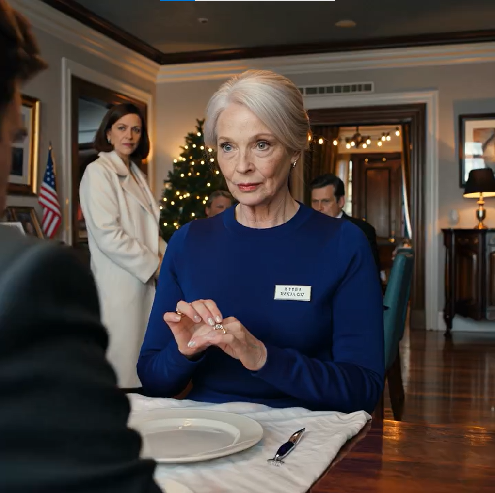 Mój syn Caleb siedział na czele stołu. Spojrzał na odznakę, na tacę w moich rękach, na długi stół zastawiony kryształami i srebrem, który lśnił w świetle – i uśmiechnął się krzywo.