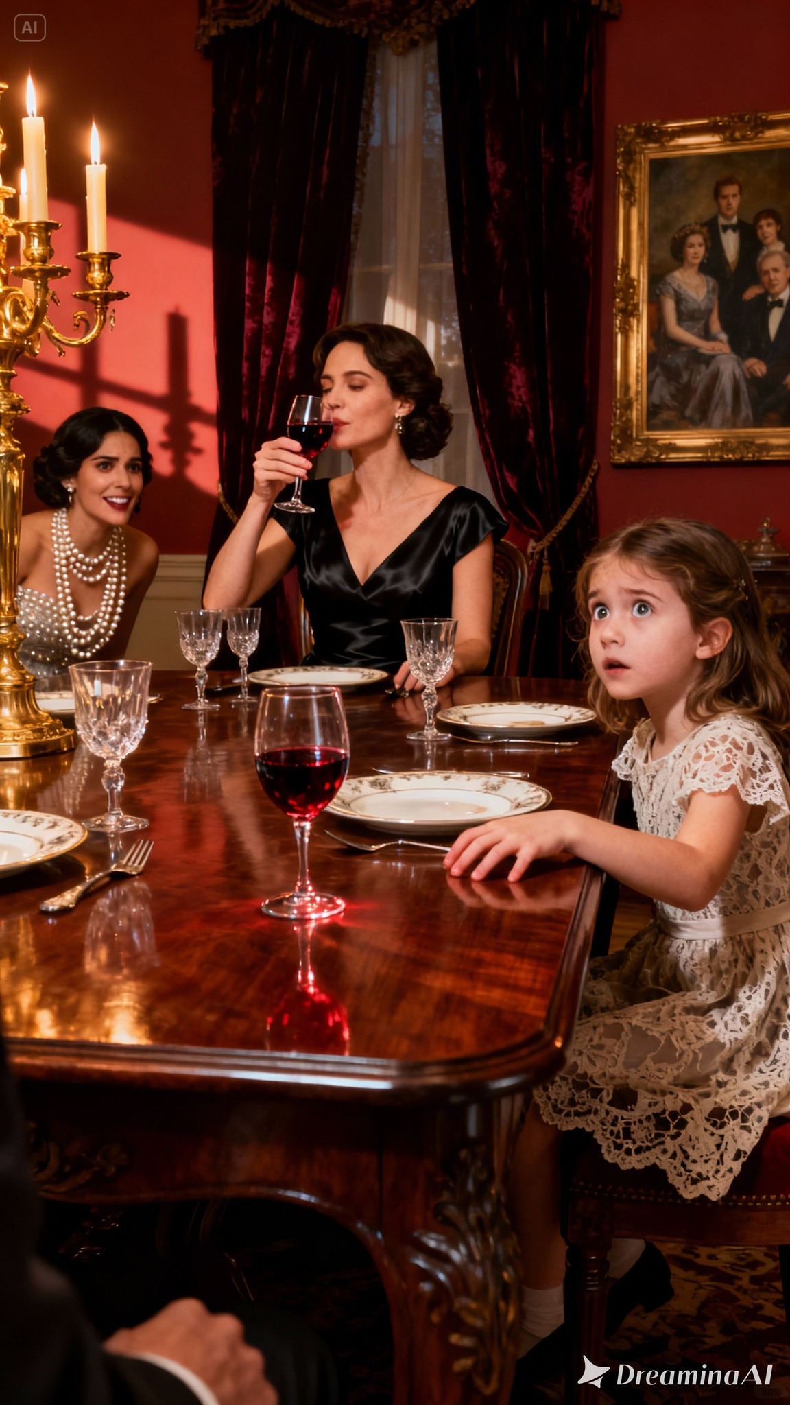 Wstała z krzesła, jej ruchy były kwintesencją wyćwiczonej gracji. Jej uśmiech był mdłą, słodką, idealnie namalowaną maską. Podeszła do mnie, jej jedwabna sukienka szeleściła na antycznym dywanie. Uniosła ciężką, ozdobną kryształową karafkę i pewną ręką nalała mi do kieliszka ciemnoczerwonego wina, napełniając go niemal po brzegi.