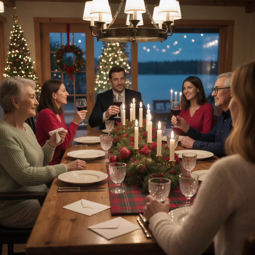 Święta Bożego Narodzenia w domku nad jeziorem zawsze wyglądały jak pocztówka i przypominały próbę generalną. Wieniec na szklanych drzwiach pasował do kraciastego bieżnika na stole z drewna wiśniowego. Mama ustawiła świece w równych odstępach co trzy cale, płomień płonął równomiernie i fotogenicznie. Kryształowe kieliszki odbijały światło lampek choinkowych, tworząc idealne małe aureole.