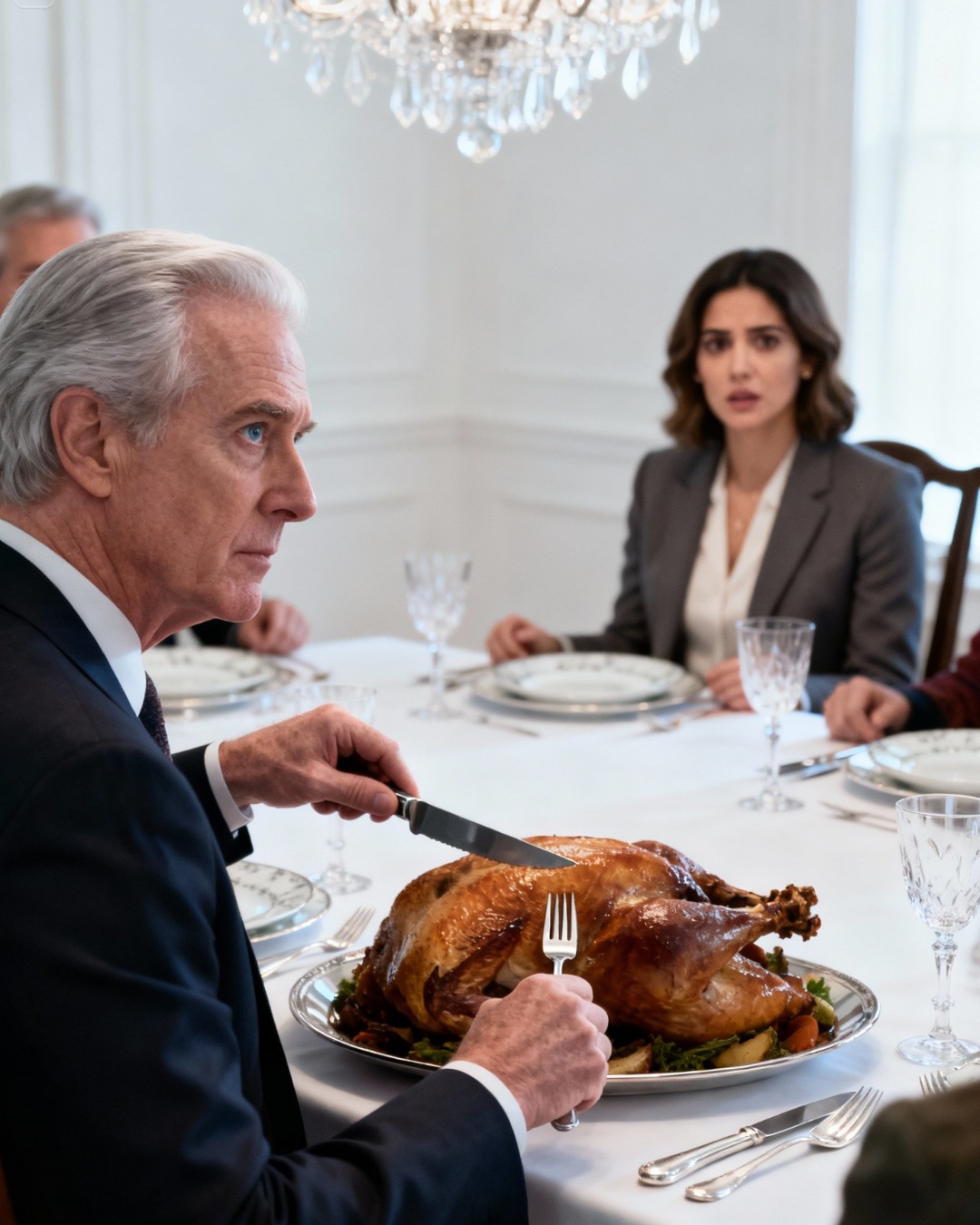 Kolacja została podana w formalnej jadalni. Długi stół był zastawiony dobrą porcelaną, talerze obramowane złotą obwódką, która przetrwała trzy pokolenia. Indyk leżał pośrodku, złocistobrązowy i parujący. Mój dziadek zajął miejsce u szczytu stołu z nożem do krojenia w dłoni. Wyglądał na potężnego, pełnego energii. Nie wyglądał na człowieka, który z trudem wygospodarowuje świąteczną premię. Rozmowa rozpoczęła się od zwykłego, niewinnego pomruku. Hannah opowiadała o swoich wskaźnikach zaangażowania i potencjalnym partnerstwie z firmą produkującą wodę witaminową, co do której byłem niemal pewien, że to piramida finansowa. Mój ojciec kiwał głową, zadając pytania o odpisy podatkowe, których Hannah najwyraźniej nie rozumiała. Moja matka wciąż nakładała wszystkim na talerze farsz, śmiejąc się trochę za głośno z dowcipów, które nie były szczególnie śmieszne.