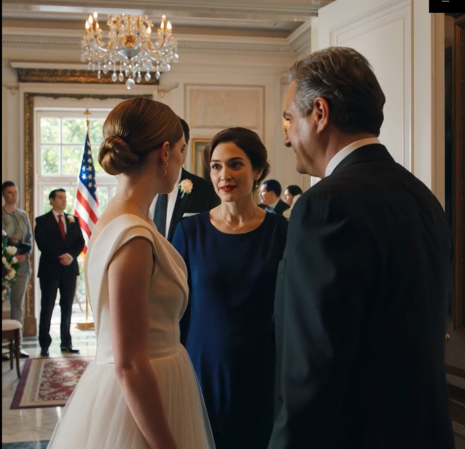 Michael robi krok naprzód, jego głos jest stanowczy, ale opanowany. „Moja żona jest gościem. Jest prezesem Medovy. Zostaliśmy osobiście zaproszeni przez pana młodego”.