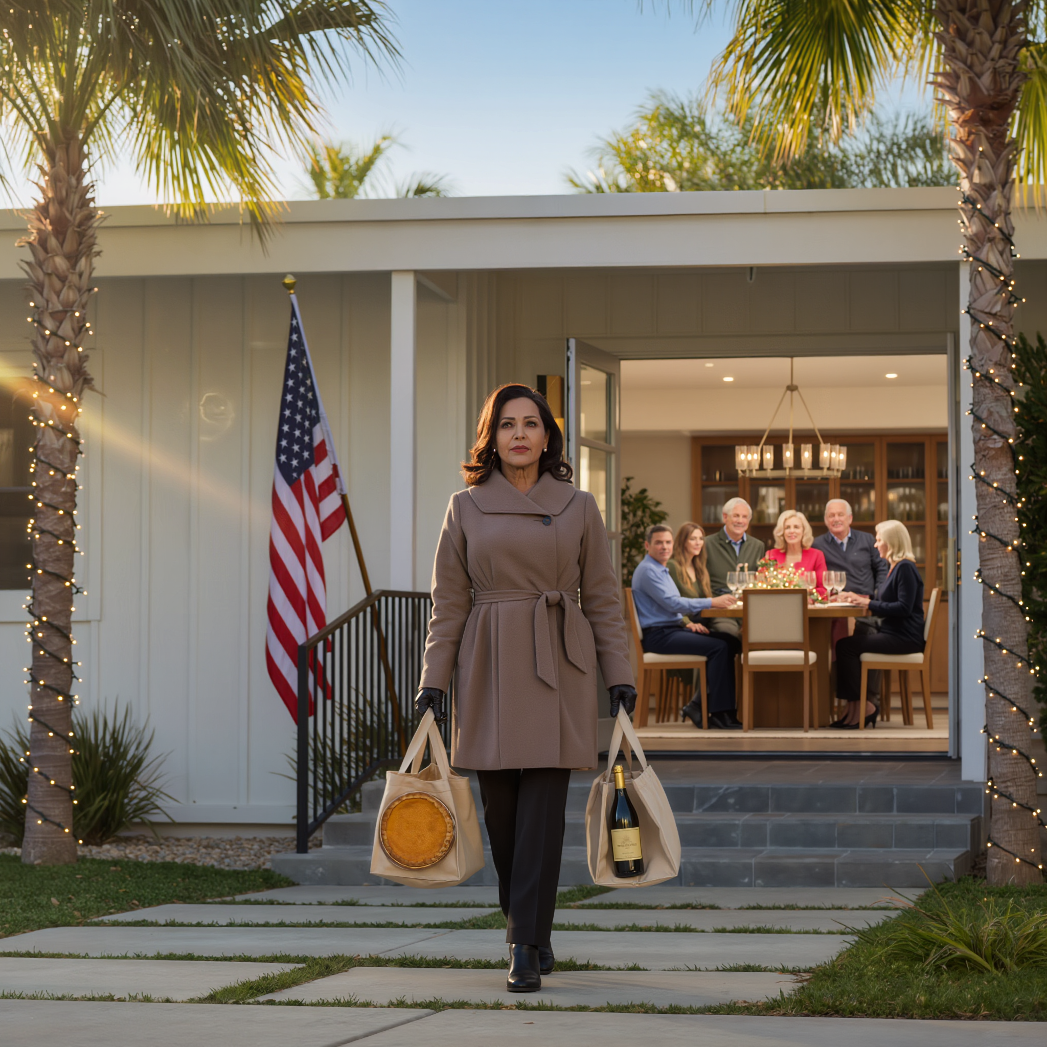 Stałam na progu, a palce bolały mnie od ciężaru dwóch płóciennych toreb wbijających się w ramiona. W jednej z nich znajdowały się dwa domowe ciasta dyniowe, których skórki pomarszczyły się moimi starzejącymi się dłońmi o piątej rano. W drugiej butelka wina Napa Cabernet, którą zbierałam przez prawie rok, odrzucając każdą pokusę, by ją otworzyć, szepcząc do siebie: