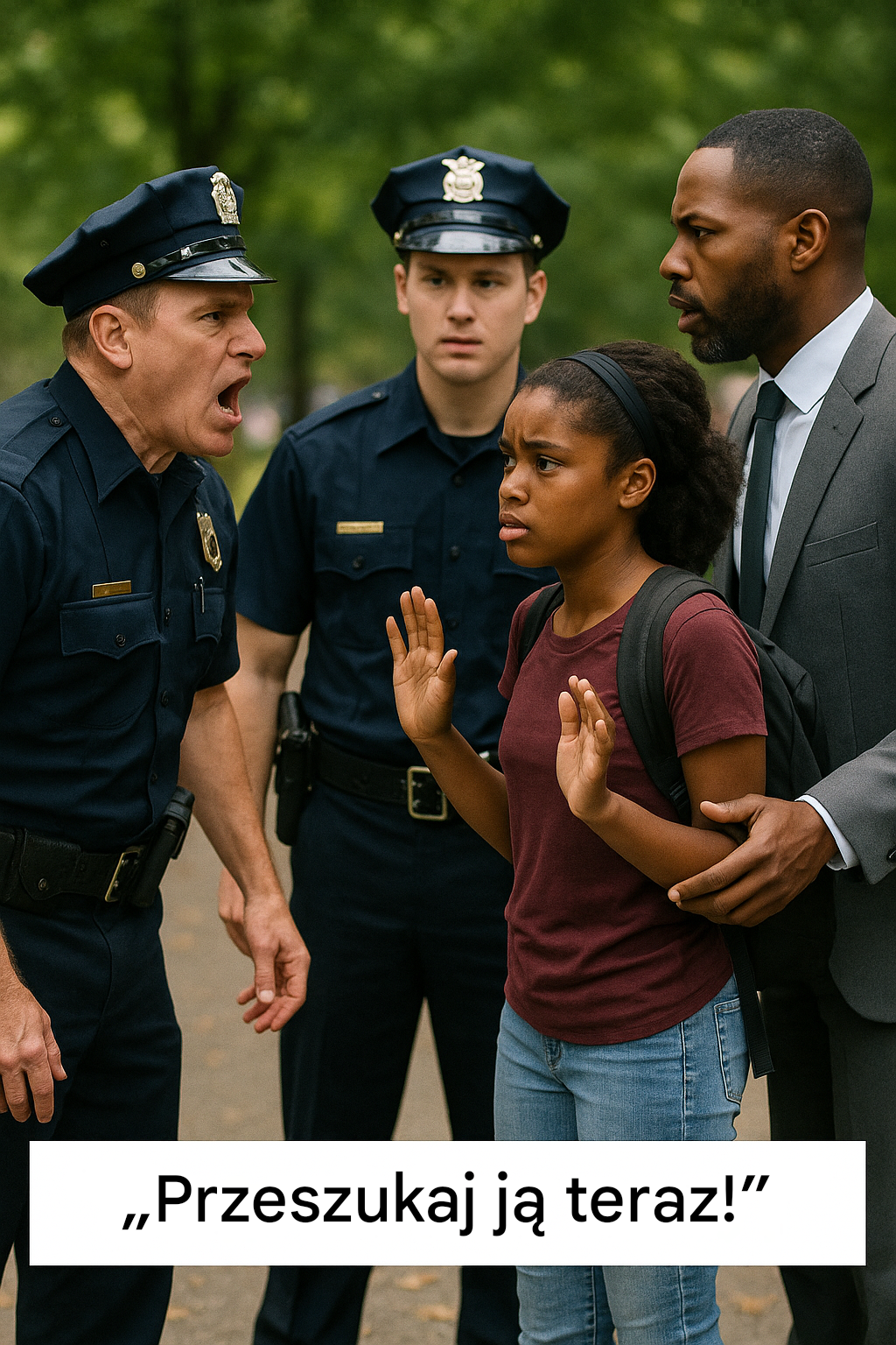 „Przeszukajcie ją natychmiast!” Głos oficera Danielsa przeciął gęste letnie powietrze, ostry i ciężki.