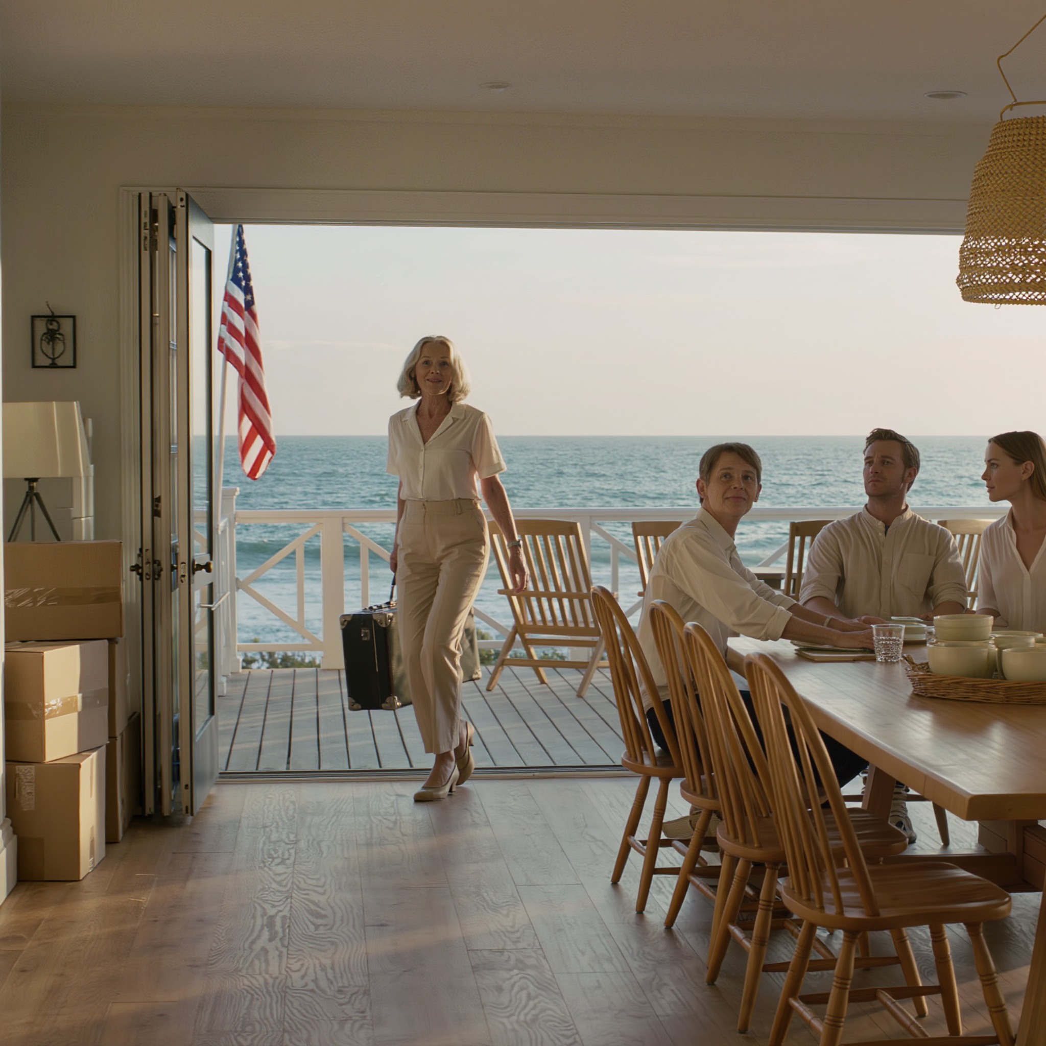 Kolacja. Krzyk Marka. Kupno domu na plaży. Sprzedaż tego domu.