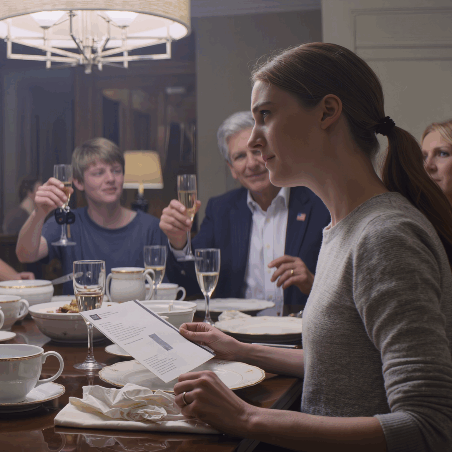 Tata ponownie uniósł kieliszek. „Za nowe początki” – powiedział. „Za świetlaną przyszłość Rowana i nowo odkrytą odpowiedzialność Vivian”.