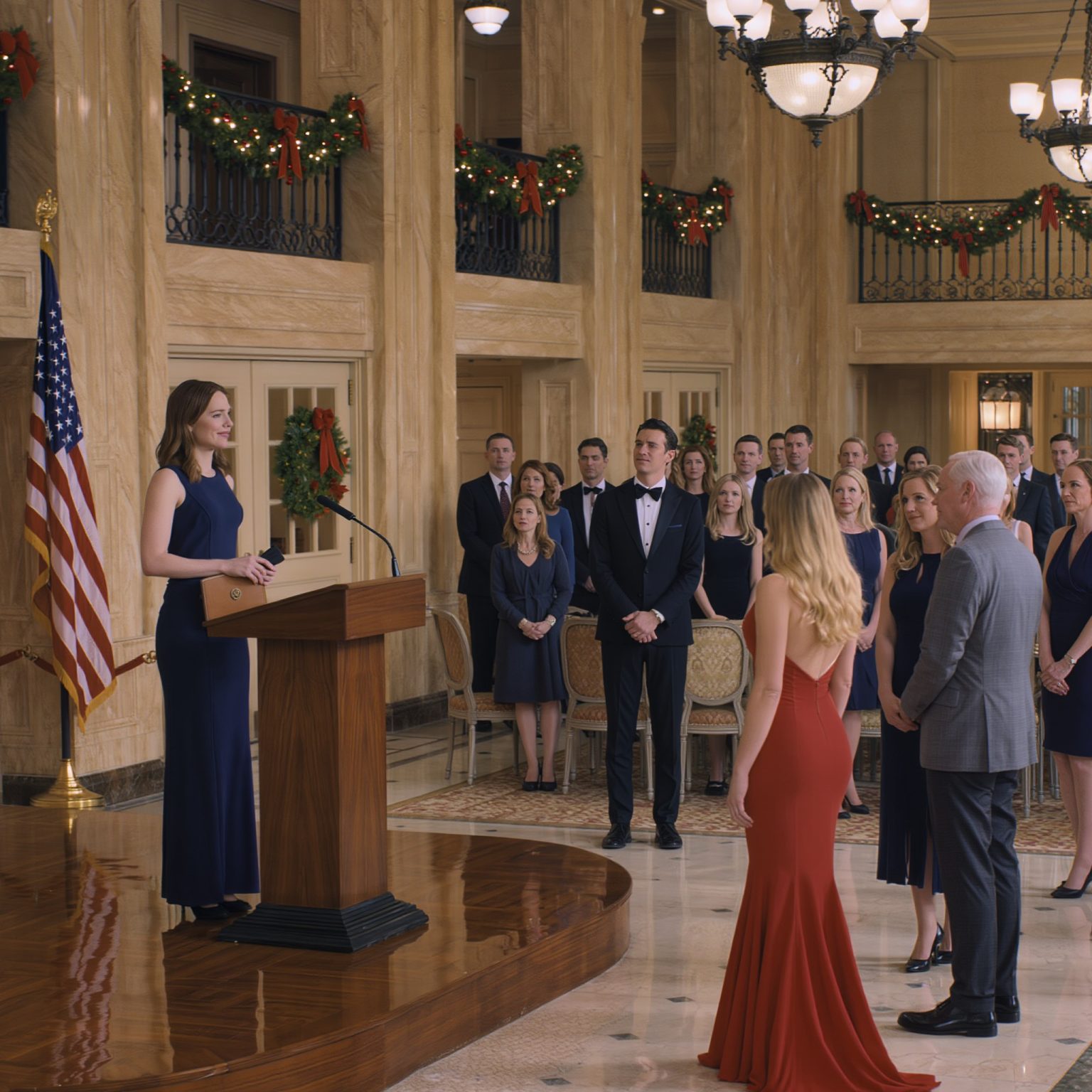 Kiedy talerze z deserem zniknęły, Sophia stuknęła w szklankę i spróbowała chwycić mikrofon. „Z radością ogłaszam…” Marcus wstał. „Zarząd będzie mówił w imieniu zarządu”. Kamery się przechyliły. Zapadła cisza.