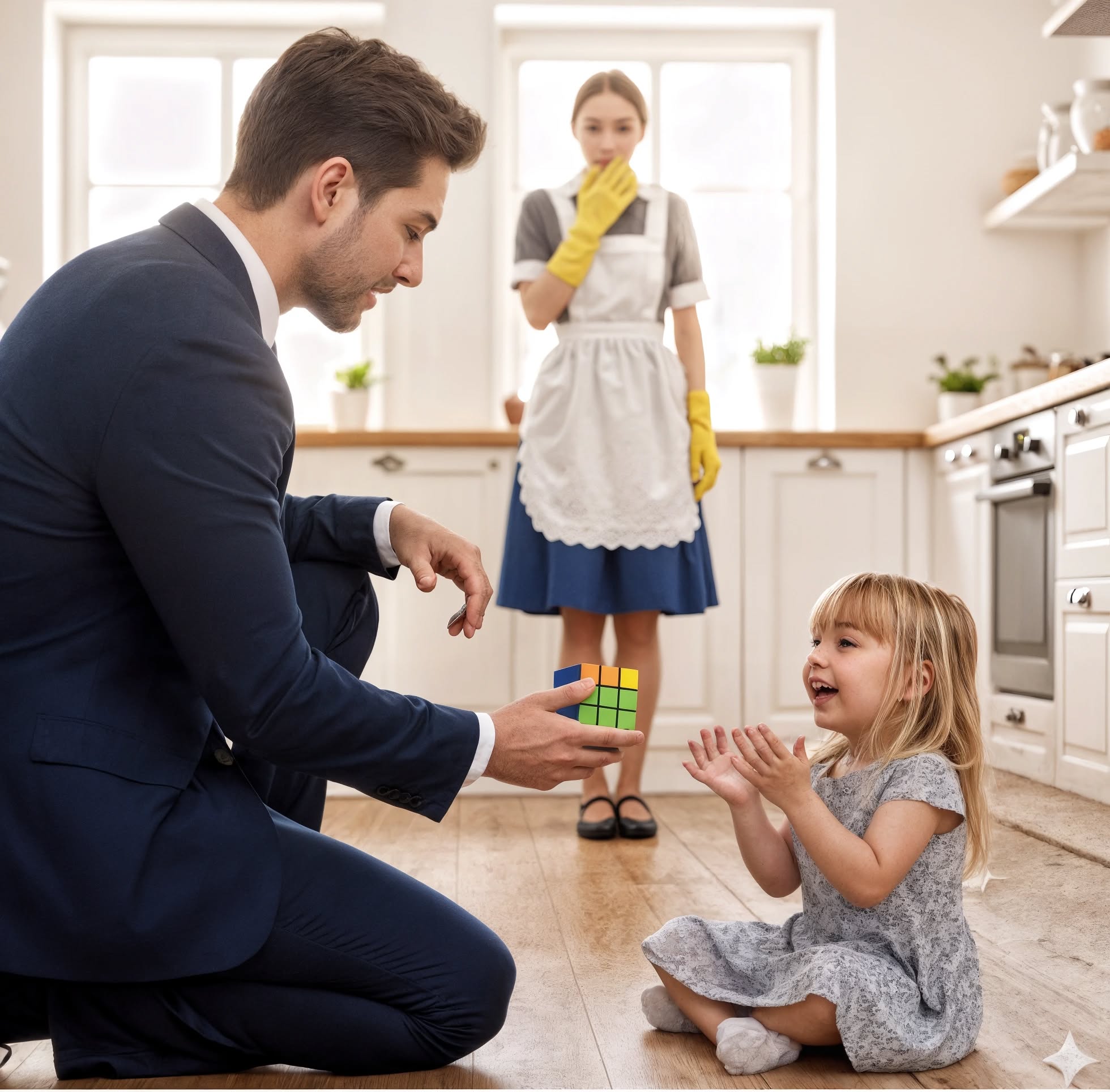 Skromna sprzątaczka, nie mając komu powierzyć swojej córeczki, postanowiła zabrać ją ze sobą do pracy. Nie przypuszczała, że reakcja jej szefa-milionera zmieni wszystko.